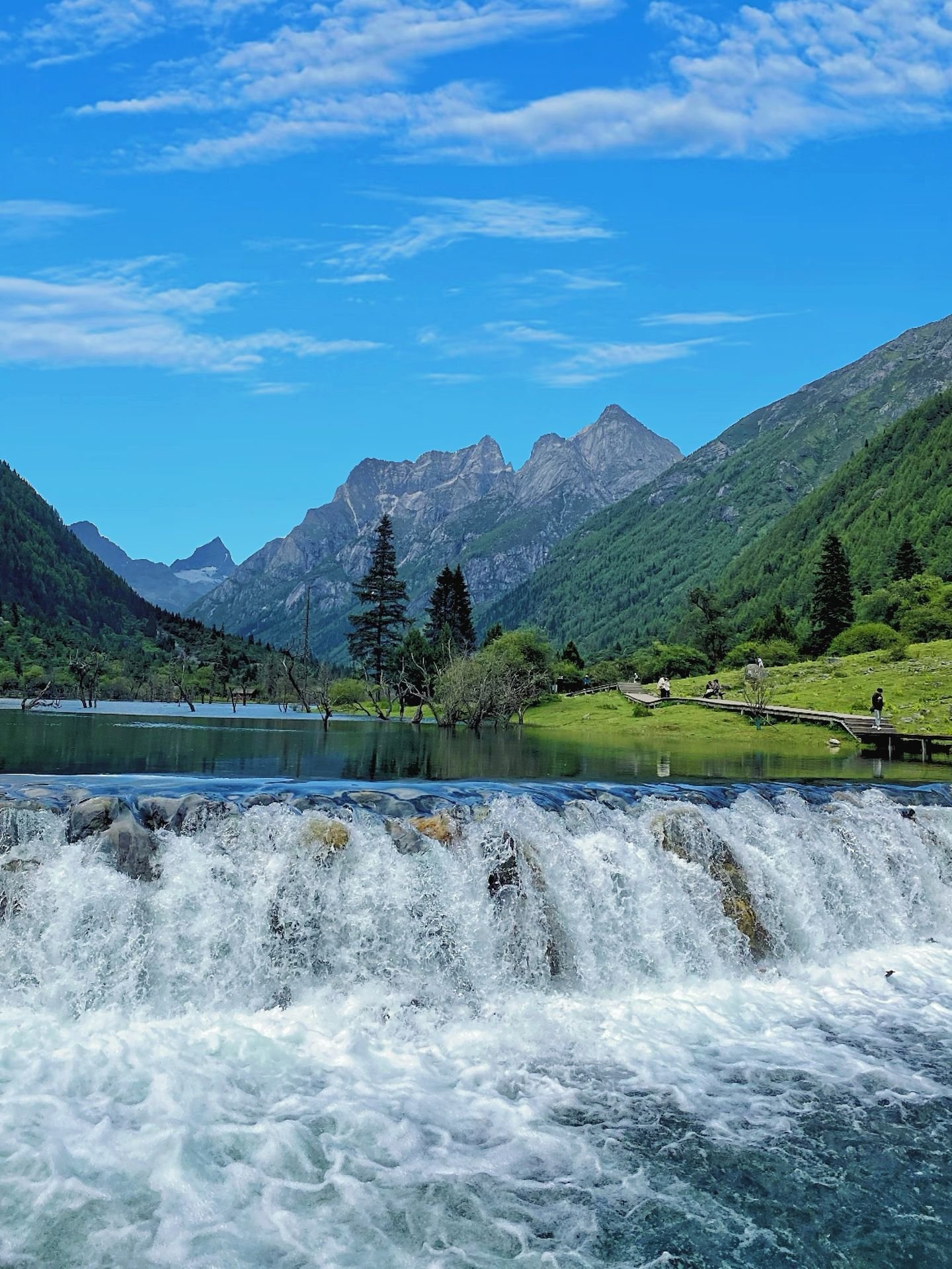 Nestled in Jiuzhaigou Nianyu Dam, Nianyu Dam rests peacefully among lush alpine forests, its waters reflecting the surrounding peaks like a crystal mirror. In every season, the lake transforms—spring awakens emerald greenery, autumn paints the trees in fiery hues—creating a serene and picturesque landscape that feels both timeless and enchanting.