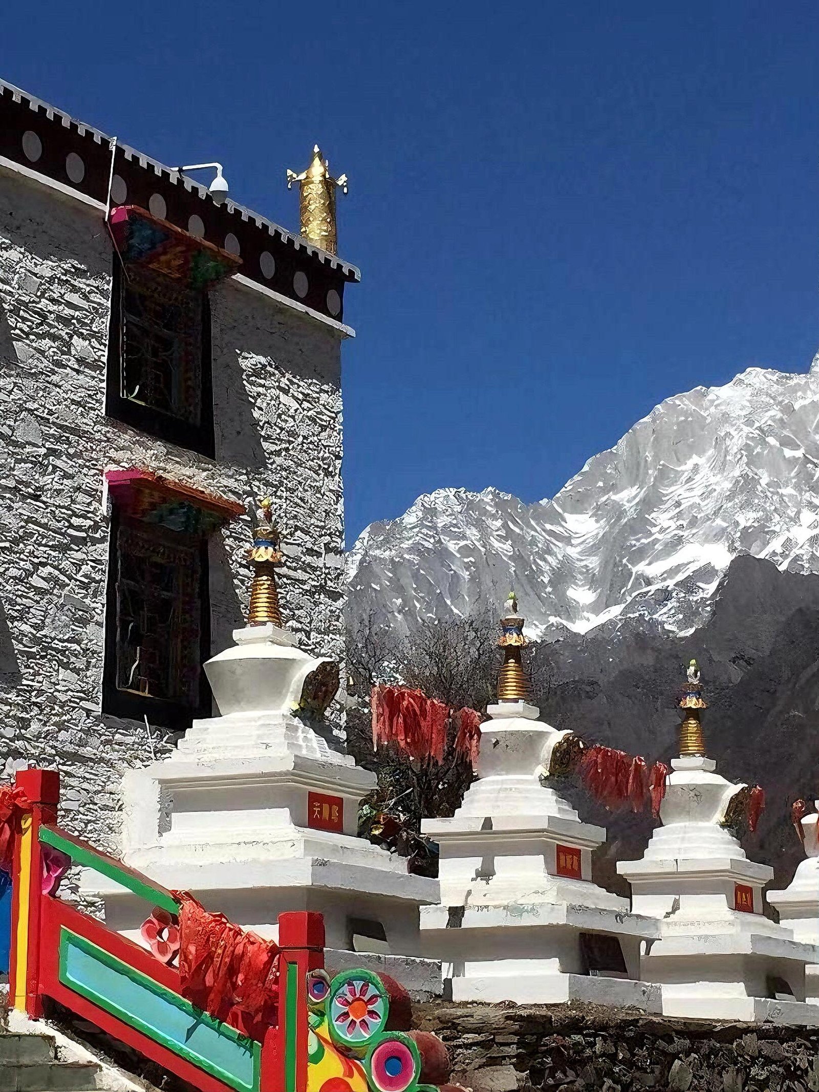 Perched on a gentle slope of Siguniang Mountain, Sigula Monastery stands as a tranquil refuge where prayer flags flutter in the crisp mountain air. Surrounded by verdant valleys and snow-capped peaks, sunlight illuminates its ancient walls, creating a peaceful and spiritual landscape that reflects both the rich Tibetan heritage and the serene grandeur of the highlands.