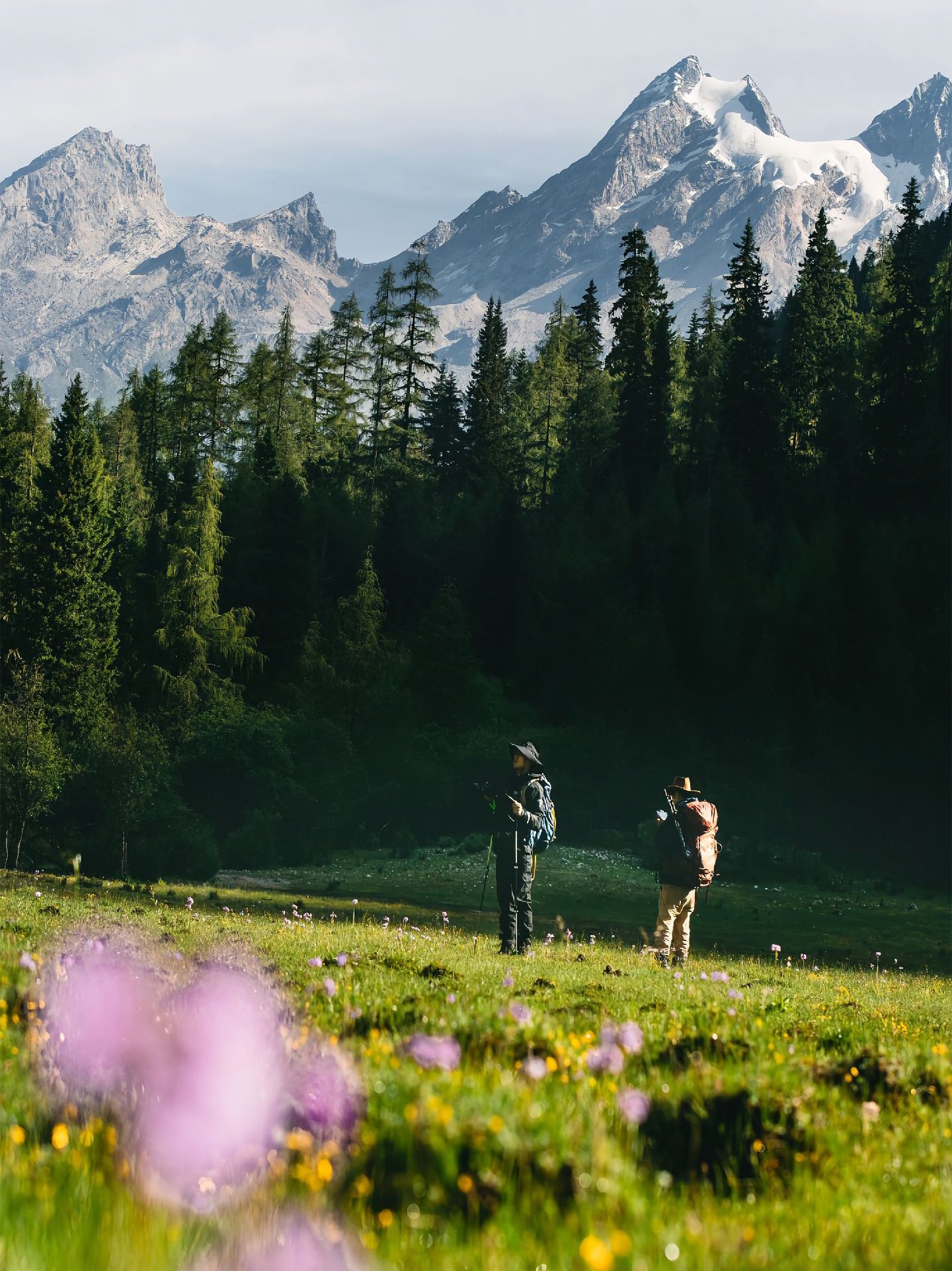 Nestled in the rolling valleys of Siguniang Mountain, Muluozi stretches as a wide, emerald meadow dotted with wildflowers and grazing yaks. Bathed in golden sunlight, the grass sways gently beneath the towering peaks, creating a serene and pastoral landscape where the tranquility of nature meets the grandeur of the alpine mountains.